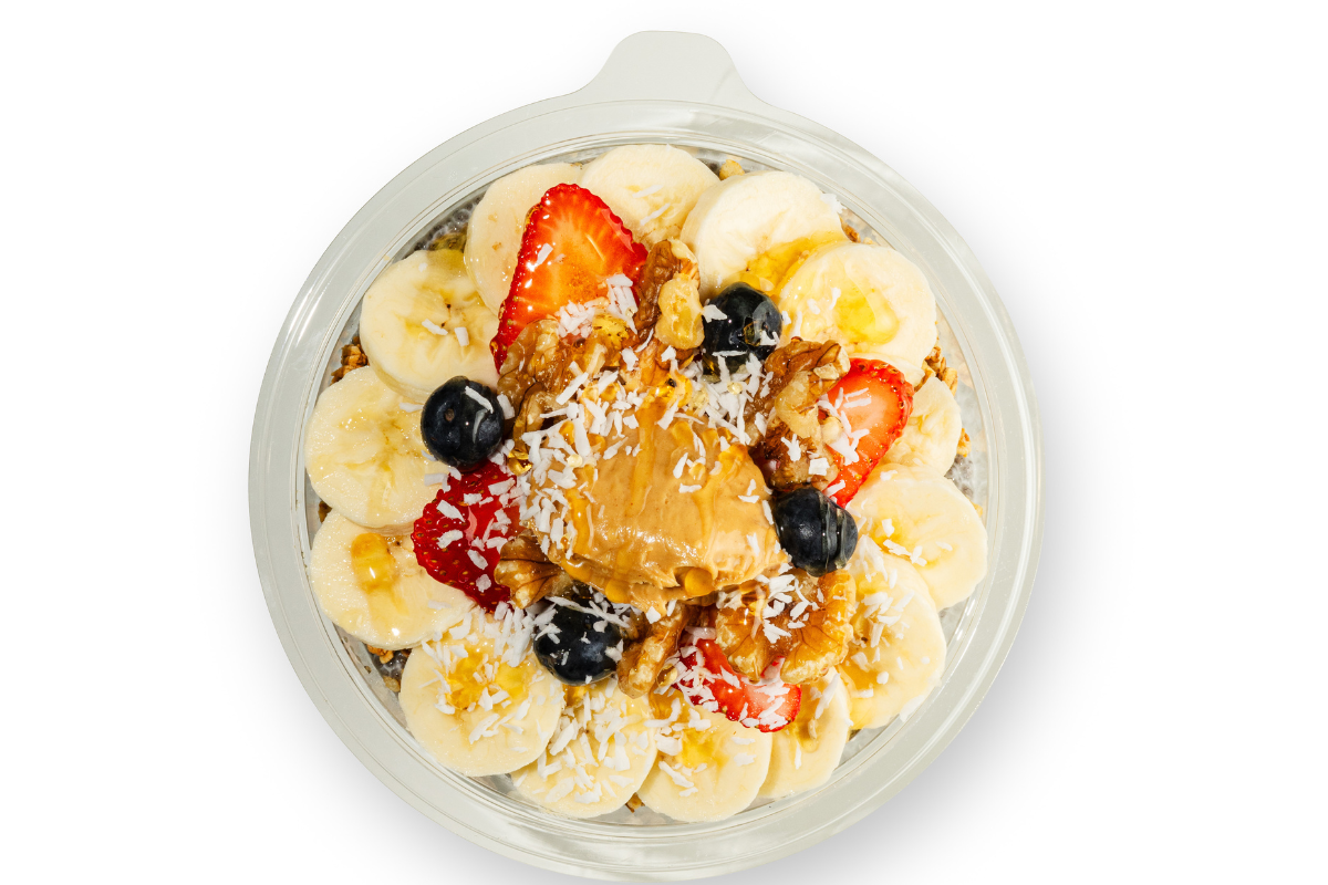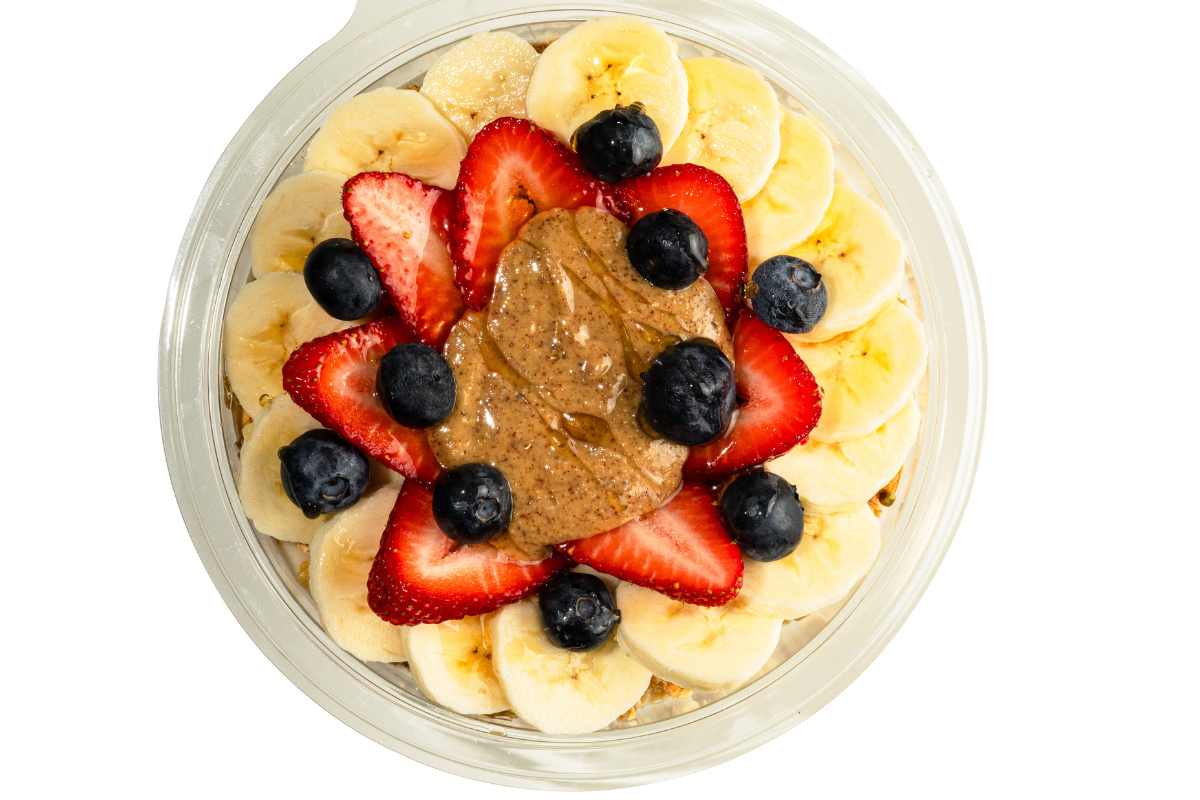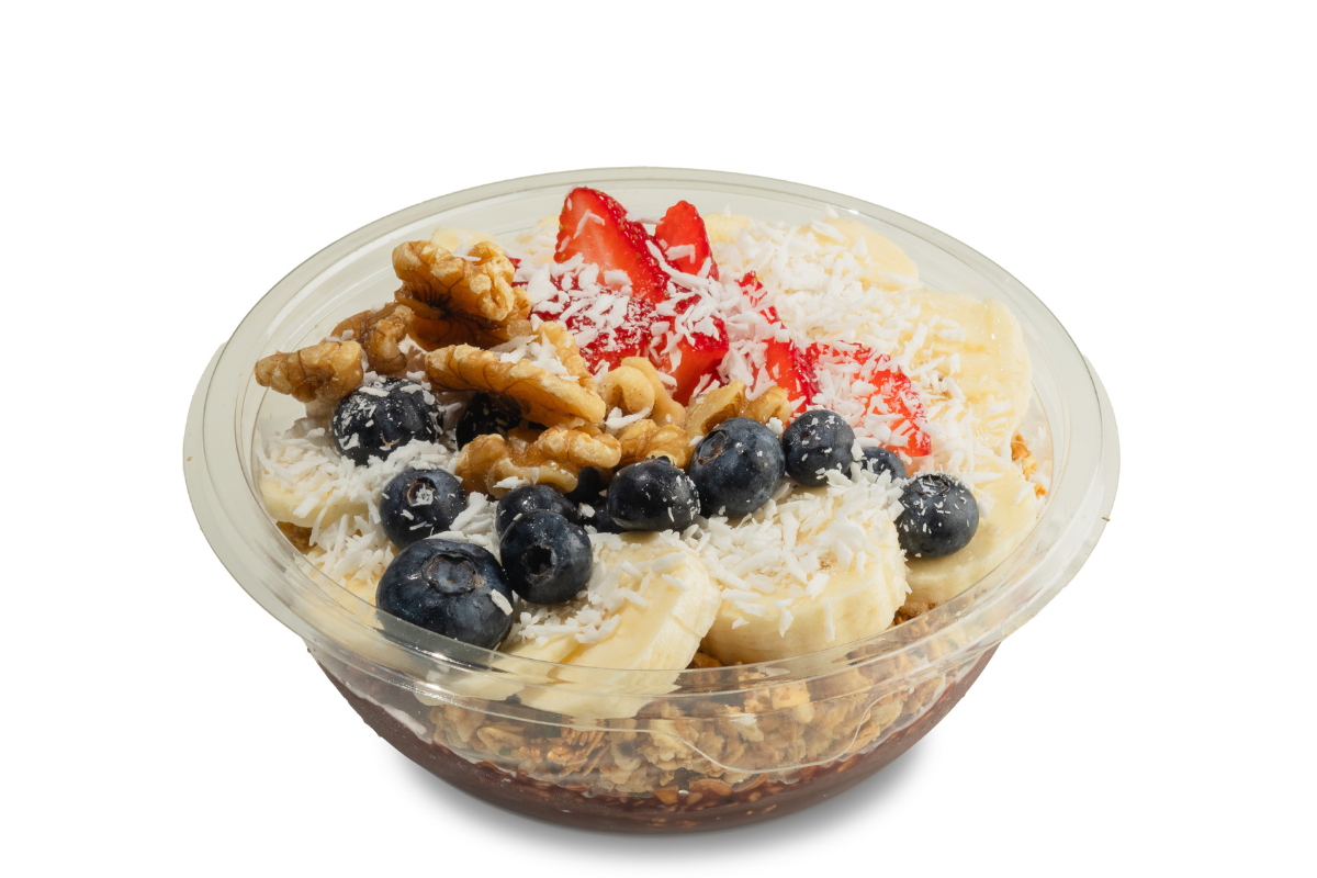 Perfectly balanced and packed with plant-based fuel! Made with an organic acai blend, almond milk, frozen banana, and organic plant-based protein (natural pea protein), this bowl delivers clean, delicious energy. Topped with granola, fresh banana, strawberries, blueberries, protein-rich walnuts, and a sprinkle of coconut curls, it’s a powerhouse of flavor and strength — naturally sweet, creamy, and oh-so-satisfying.